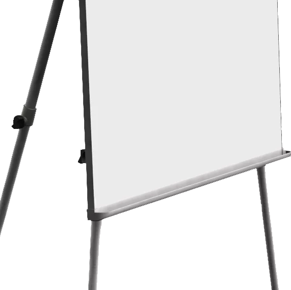 Jednoduchý třínožkový flipchart s popisovatelným plechem na přední straně desky