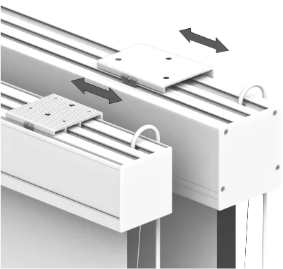 - Pohon plochy je zabezpečen trubkovým motorem s tichým designem převodovky. Horní koncová poloha je navíc opatřena dodatečným mikrospínačem, který eliminuje případné drobné změny rozměru plochy vlivem teploty a vlhkosti vzduchu. Tím je zaručeno přesné uzavření tubusu trapézovým zatěžovacím profilem