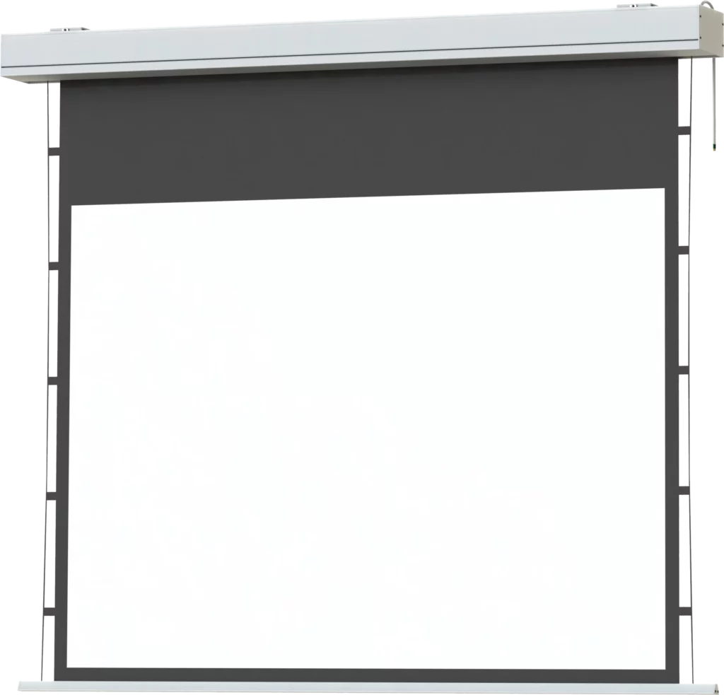 Velkoformátové motorové promítací plátno s postranním vypínacím systémem v segmentovém hliníkové tubusu v moderním designu
