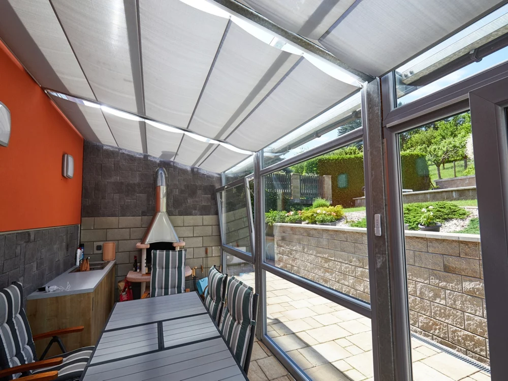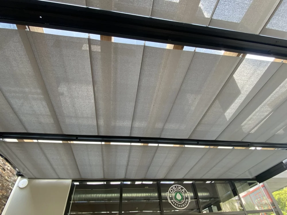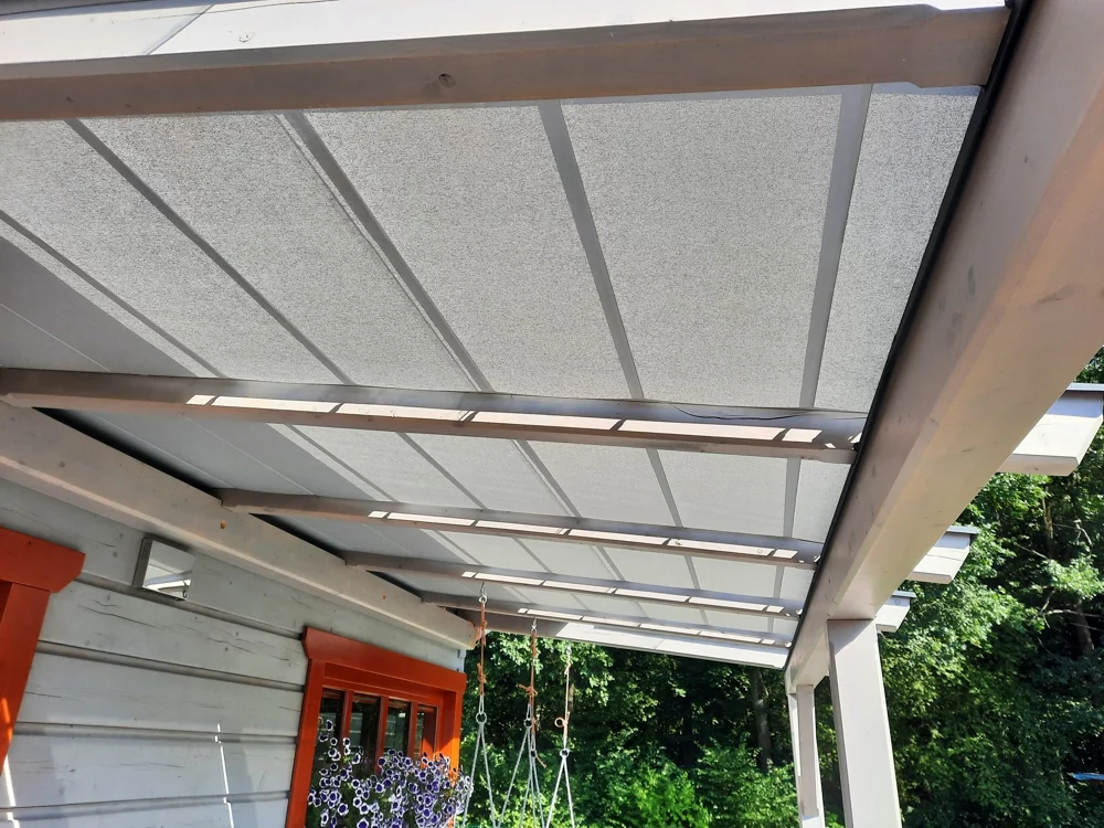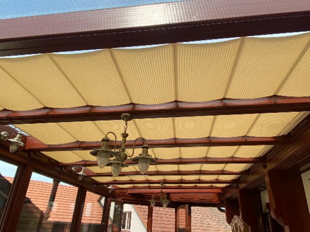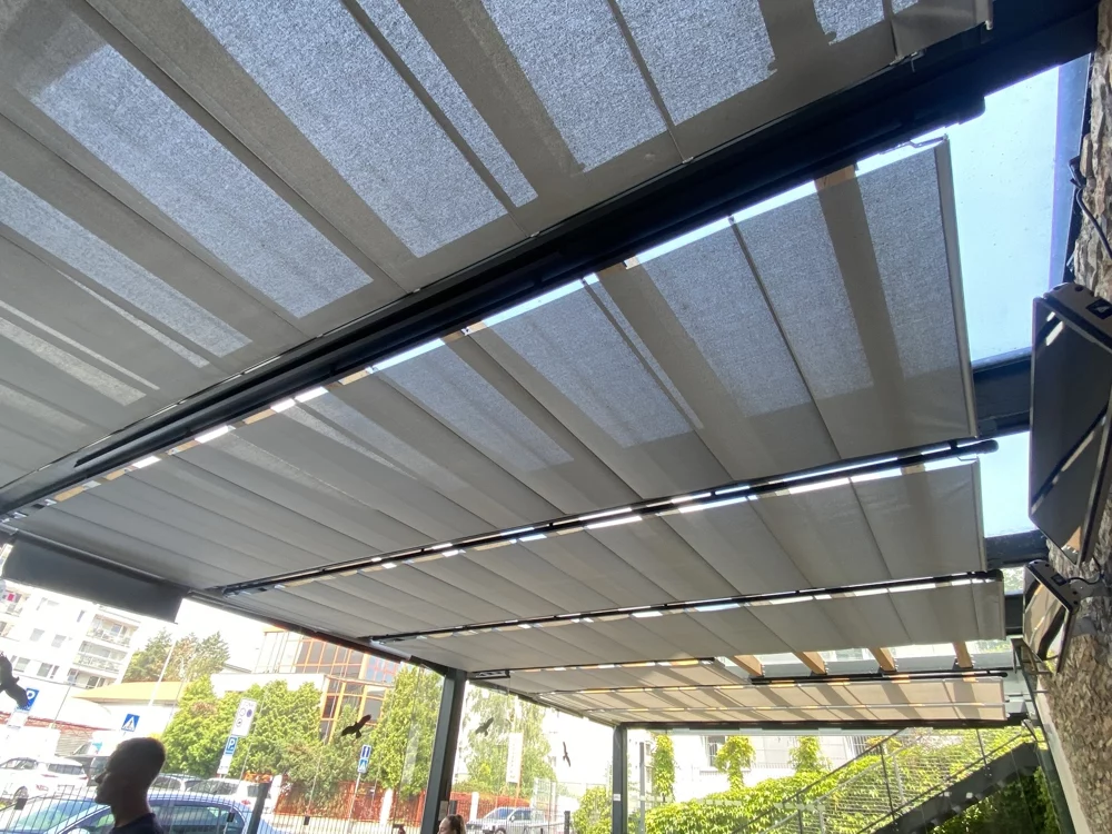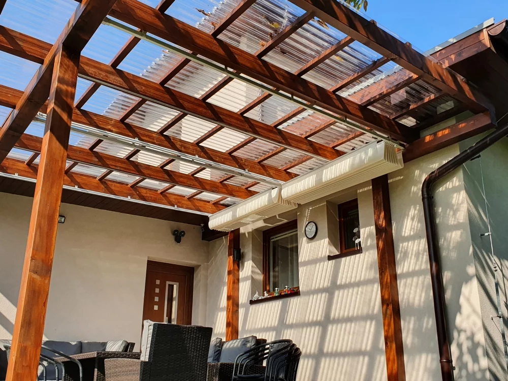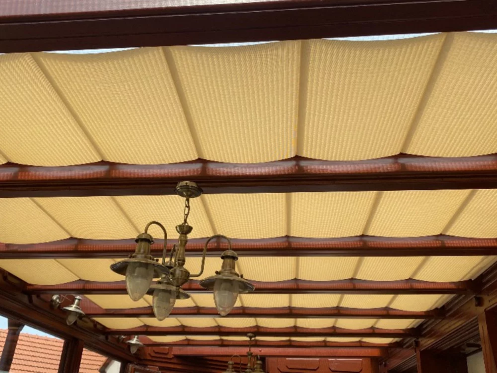 BALDACHÝN – horizontální motorické stínění pod střechu pergoly s vodícími lištami