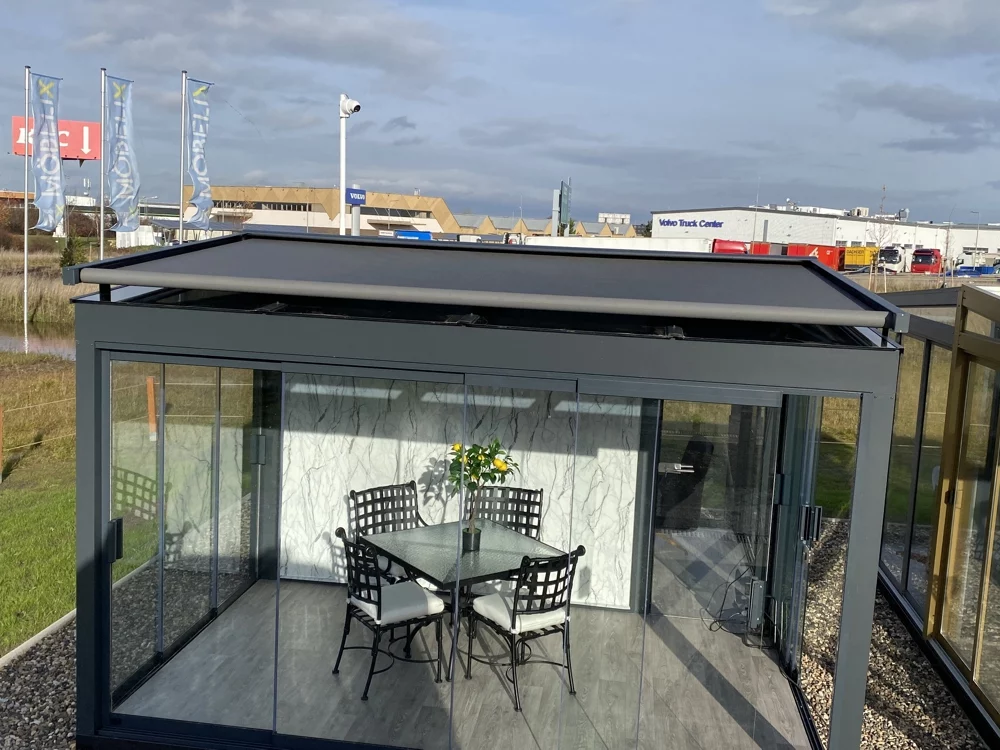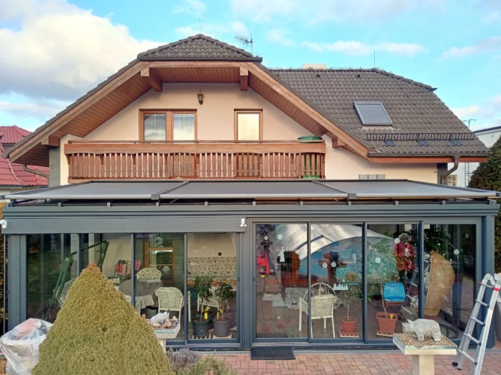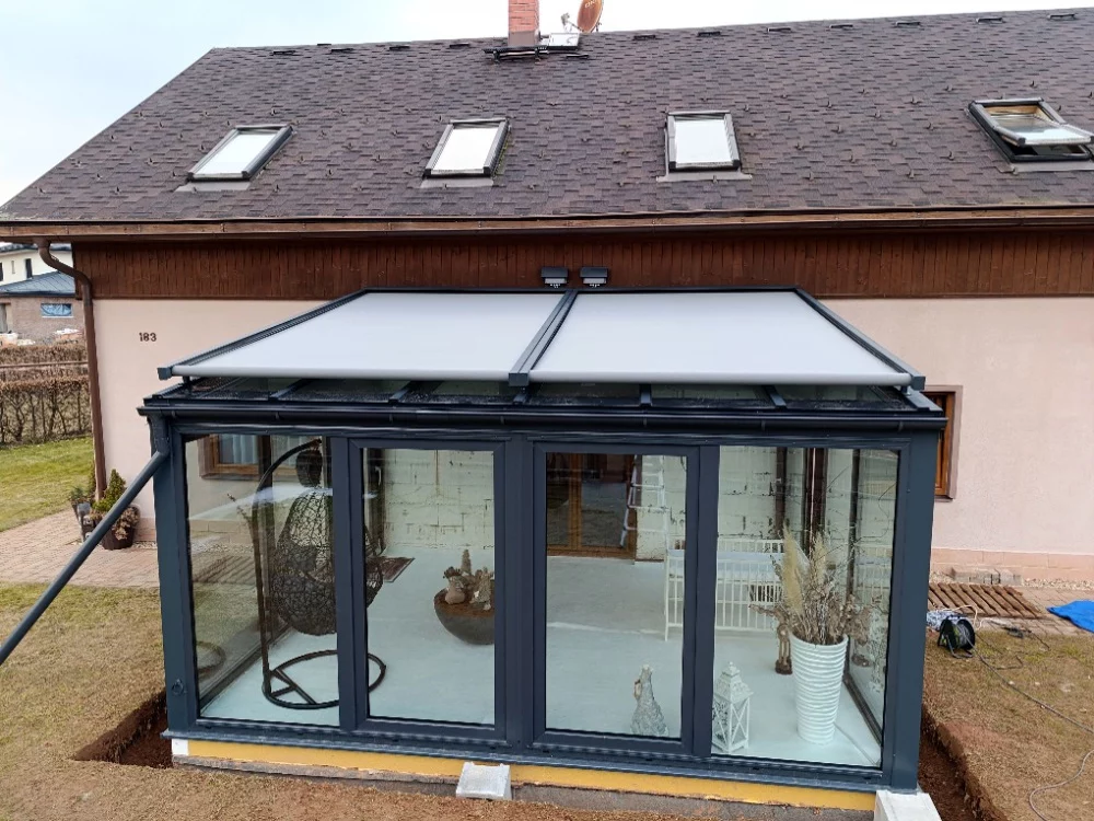 DOBLE_P – výsuvná markýza nad střechu zimní zahrady, pergoly nebo nad světlíky