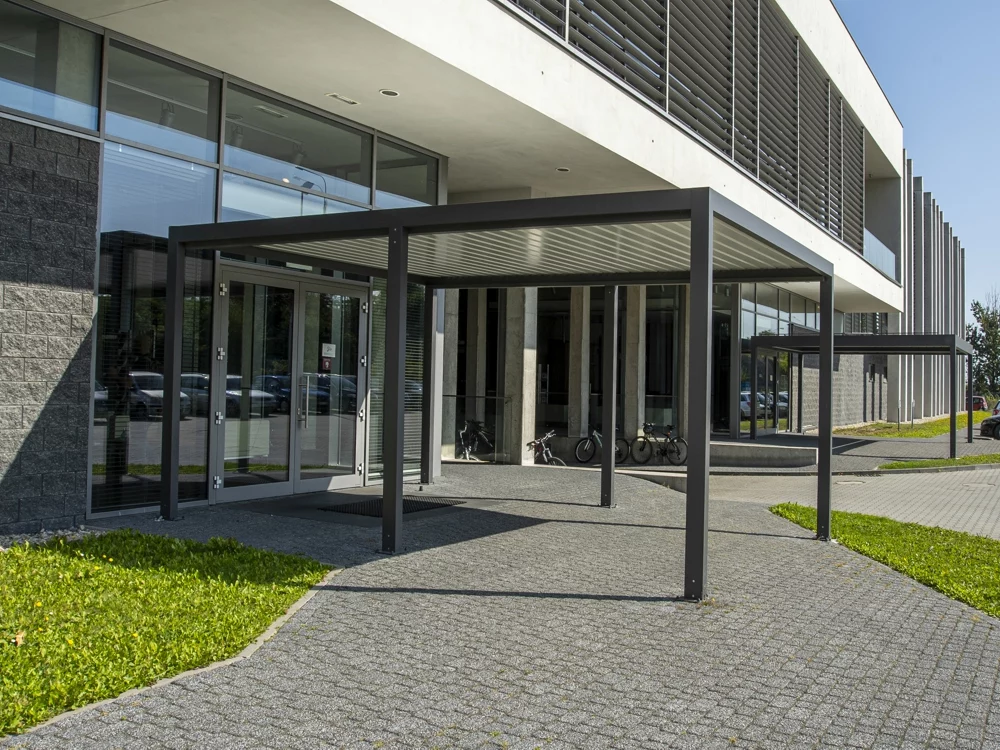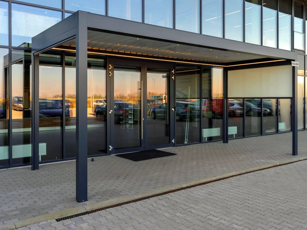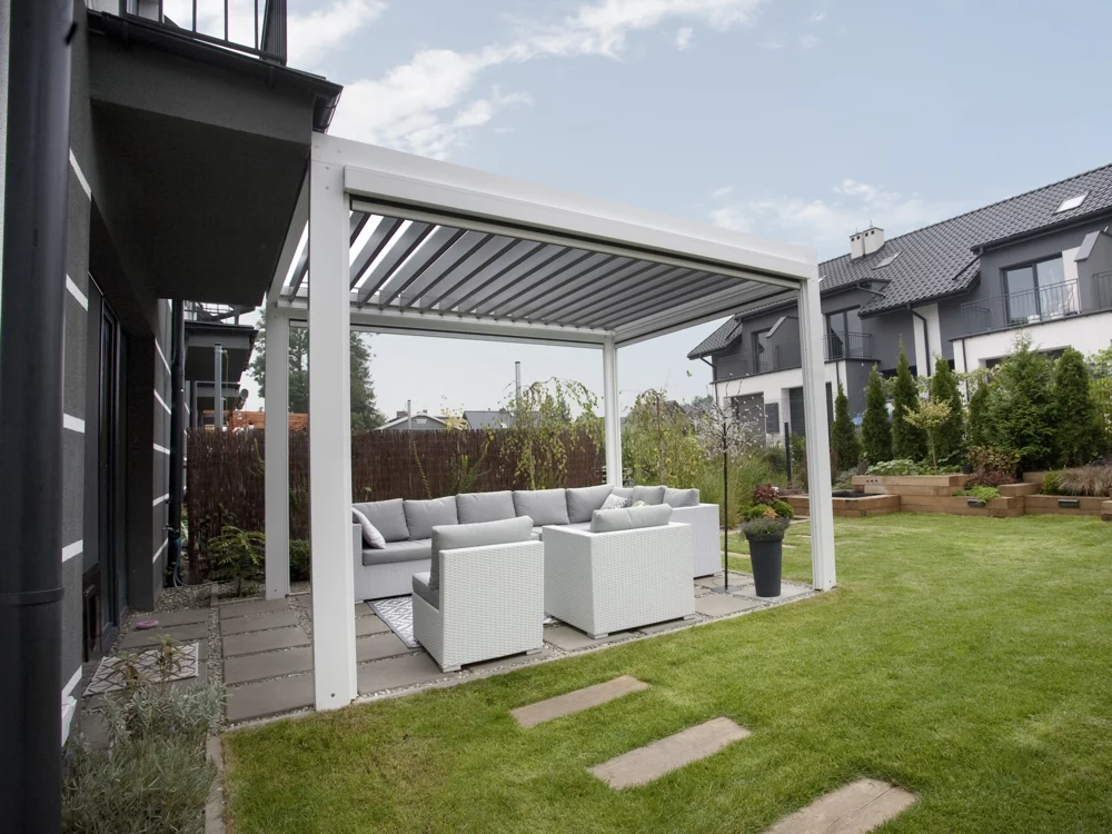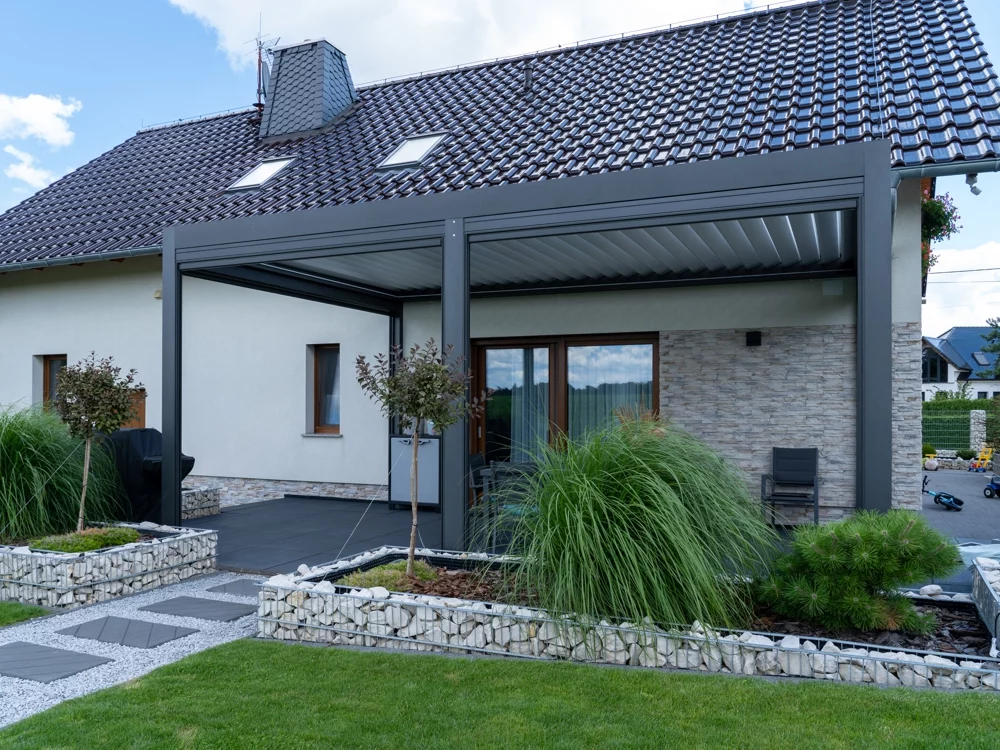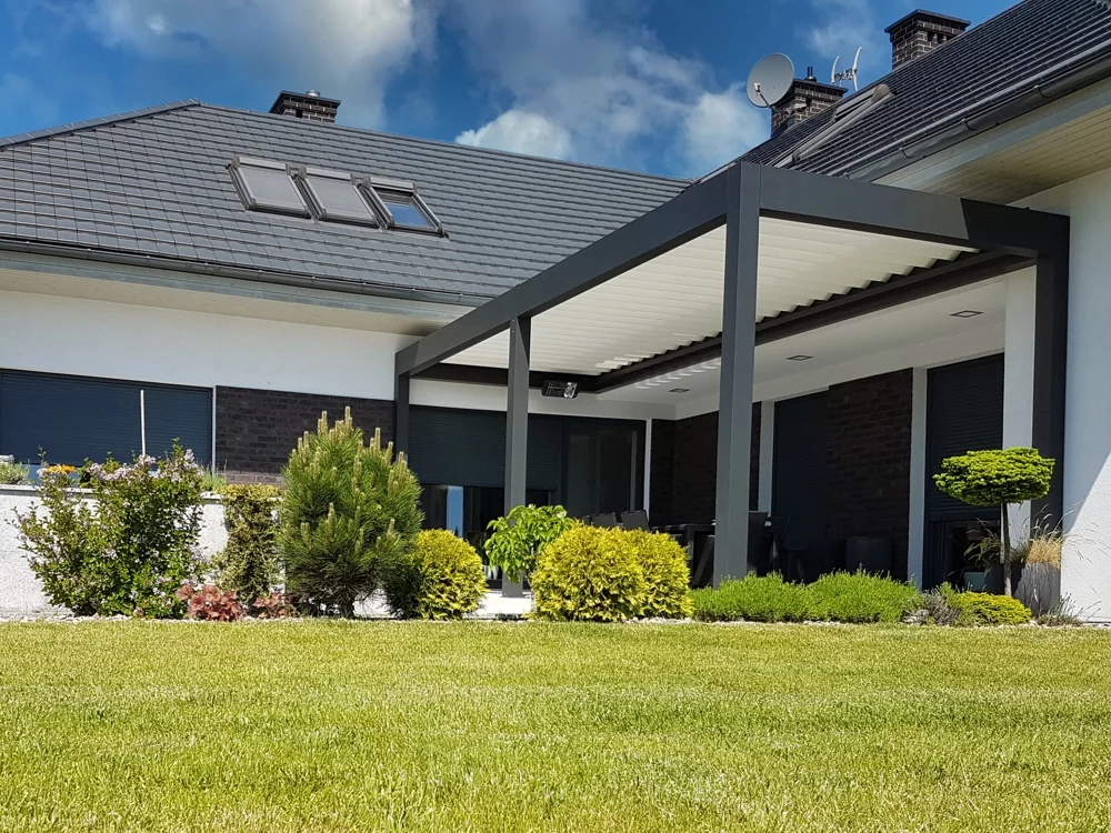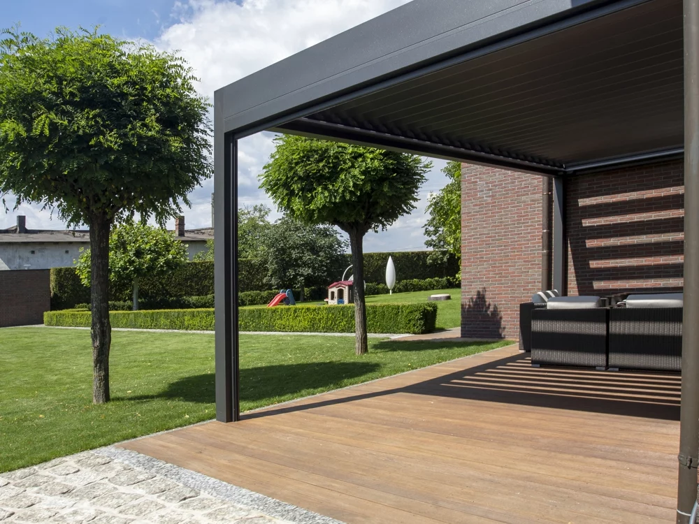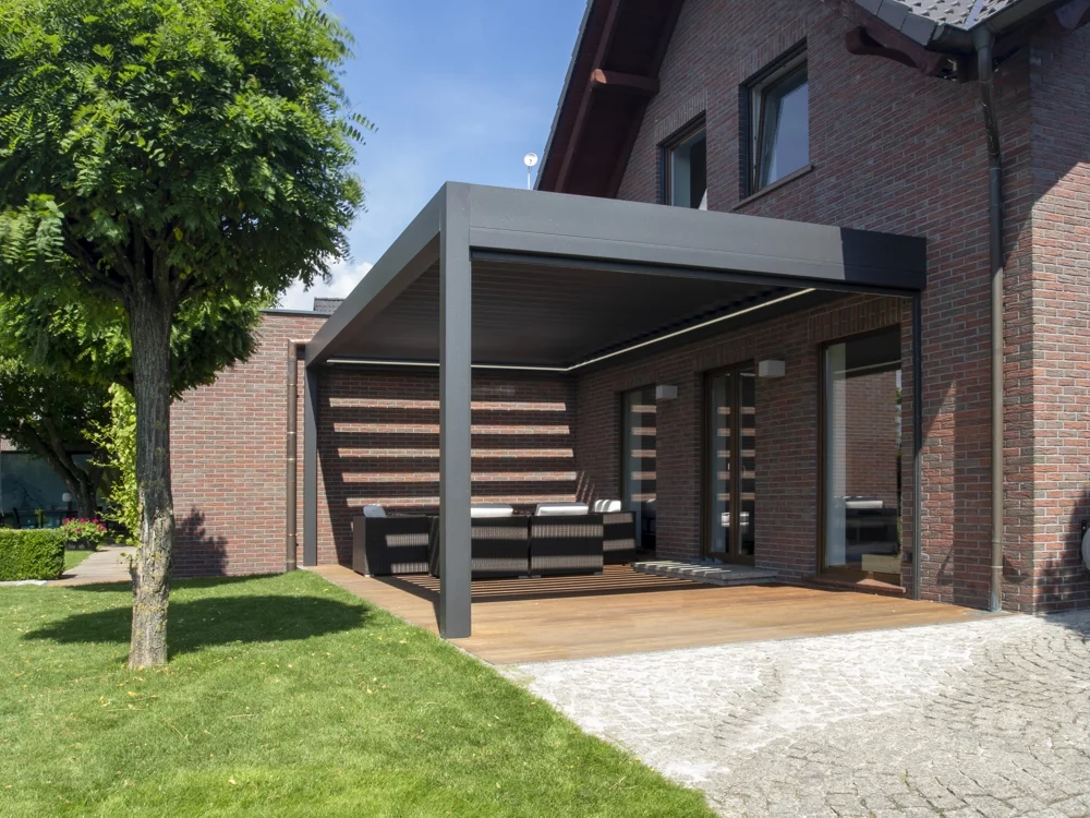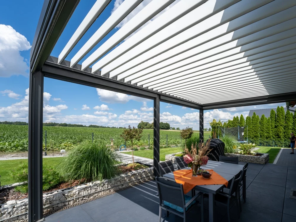 Profesionální bioklimatická pergola s otočnou lamelovou střechou. Velikost jednoho modulu maximálně 5 metrů